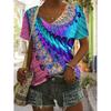 Vibrant Floral Print Short Sleeve V Neck T-Shirt - Women's Leisure T-Shirts for Spring & Summer - Comfortable,