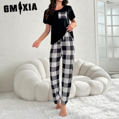 Women's Plaid Homewear Pajamas Two Piece Set with Pockets Casual Comfortable Wearable Thin Pajamas