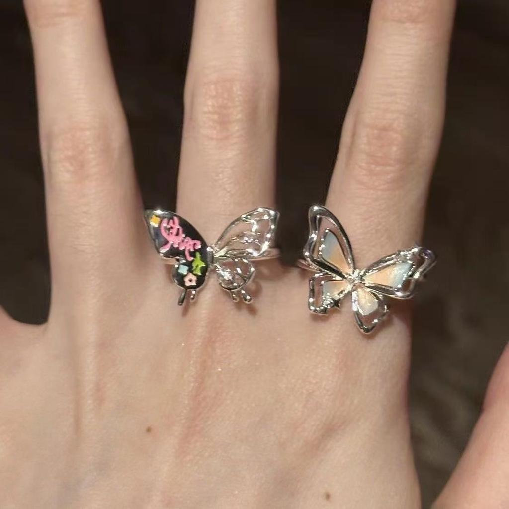 Colored Butterfly Graffiti Ring, Women's Opening Adjustable Super Fairy Enamel Temperament Ring, Niche High-end Index Finger Ring