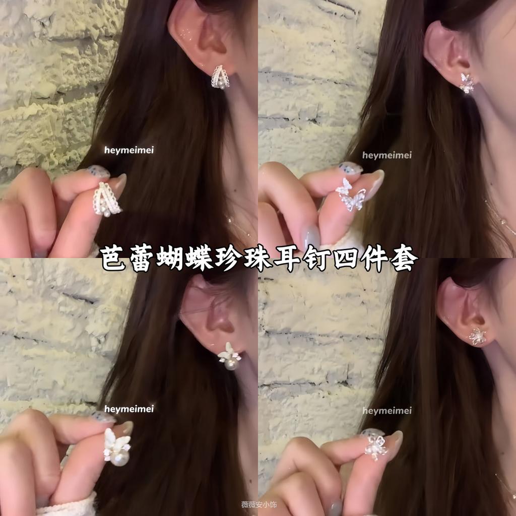 Diamond Butterfly Pearl Stud Earrings Women's Small Exquisite Design Earrings Niche Versatile High-end Earrings