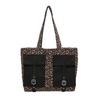 Leopard Print Canvas Zipper Casual Versatile Youth Shoulder Bags Hot Sale Large Capacity Sewing Line Bags for Women