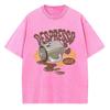 Casual Style Cartoon Coffee Cup Print Women T-Shirt Loose Wash Popular Short Sleeve Unisex Cute Distressed Top Men