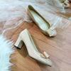 New Spring and Autumn Versatile Bow High Heels Light Mouth Temperament Sweet Single Shoes Middle Heel Shoes