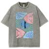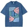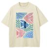 Cartoon Minimalist Feng Shui Grass Small Fish Print Women's T-Shirt Washed Loose Oversized Short Sleeve Vintage Tees