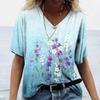 V-neck Women's Short Sleeve Summer Outdoor Casual T-shirt Tops Flower Printed Patterns Fashion