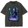 Purple Flame Skull Print Women's T-Shirt Washed Denim Fabric Super College Student Mid Sleeve Funny Retro Distressed Top
