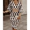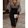 YYFS Women's Fashion Spring Fall Rhombus Print Long Sleeve V-Neck High Waist Casual Dresses