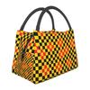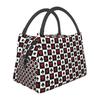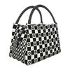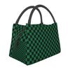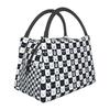 Cute Checkerboard Cat Pattern Thermal Insulated Lunch Bags Women Checkered Lunch Tote for Outdoor Picnic Storage Meal Food Box