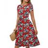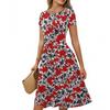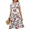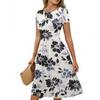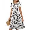 Women's Casual Fashion Round Neck Pleated Short Sleeve Retro Floral A-Line Midi Dress