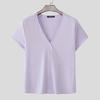 INCERUN Summer Men V Neck Short Sleeve Casual Fitted Rib Basics Tops T-shirts
