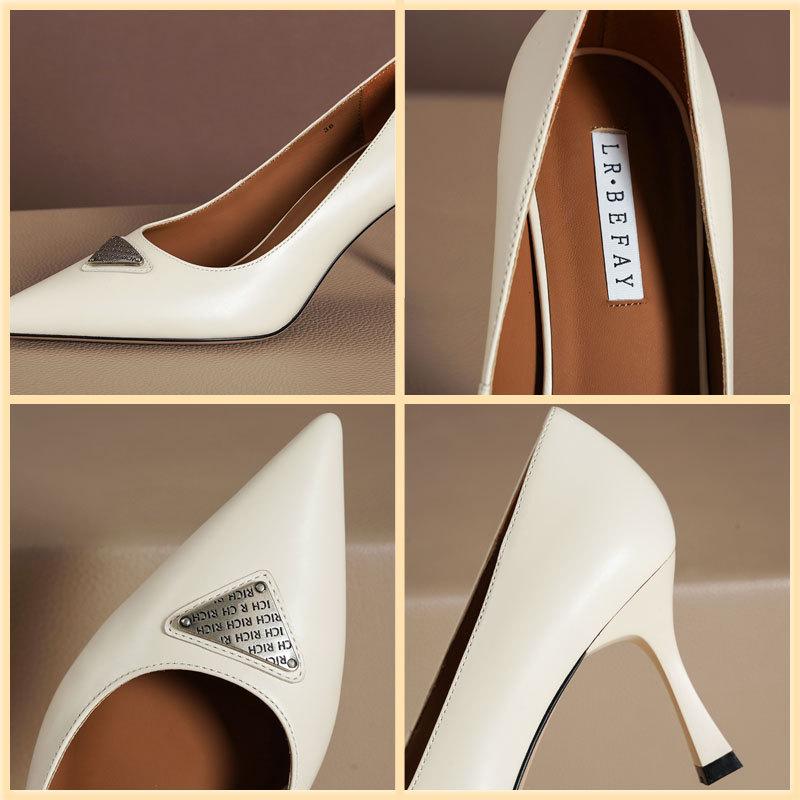 Temperament Pointed Style Work Shoes Are Not Tired Feet Sheepskin High Heels Super Large Size Leather Stiletto Wedding Women's Shoes