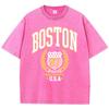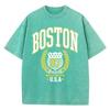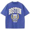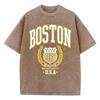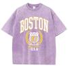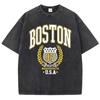 Vintage Womans Acid Wash T-Shirts Boston Athletics Badge Prints Tops Crewneck Cotton Oversize Tee Shirts Clothes