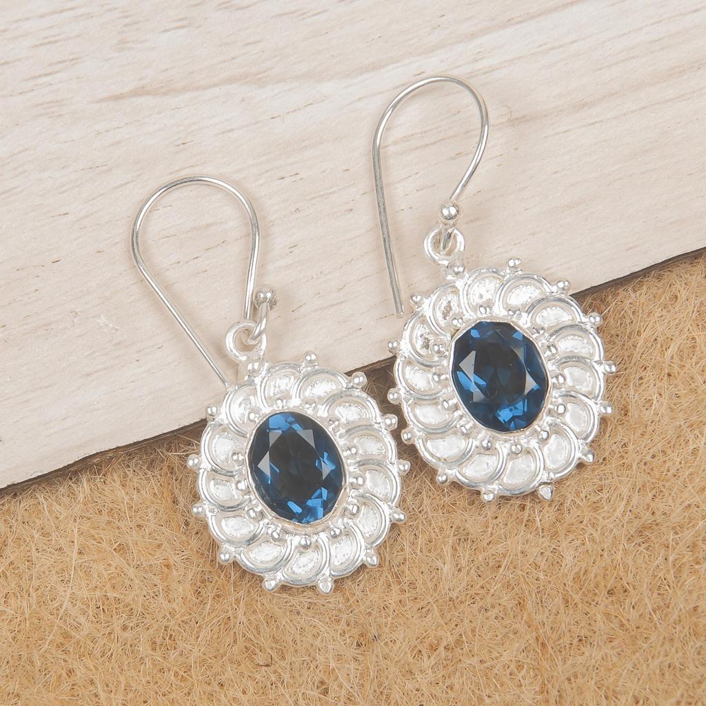 London Blue Topaz 925 Solid Sterling Silver Earrings, Handmade Gemstone Earrings Jewelry, Gifts For Wife Brand New Earrings