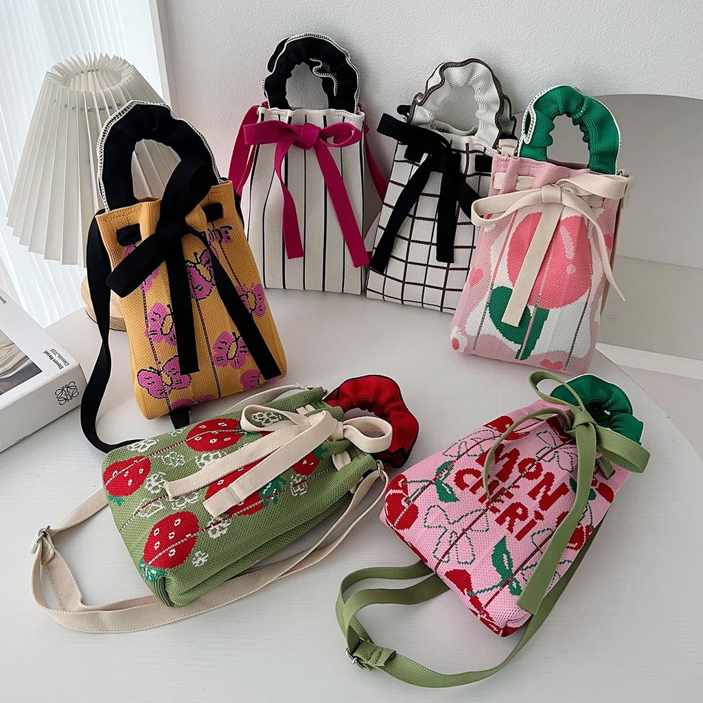 Niche Design Cute Cartoon Knitted Drawstring Bundle Bag Versatile Small Portable Commuter Messenger Handbag