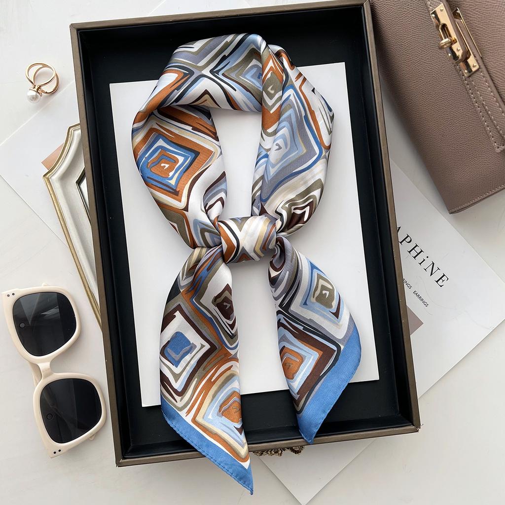 Literary Geometric Square Color Matching Trend Printing Small Square Scarf Temperament Multi-Functional Shawl Foreign Style Silk Scarf