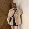 Women's Blue Corduroy Shirt Jacket - Korean Style, Loose Fit, Long Sleeve for Spring & Autumn 2025