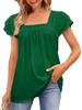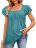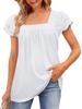 2023 Summer Women's Solid Color Loose U-Neck Lace Short Sleeve Top