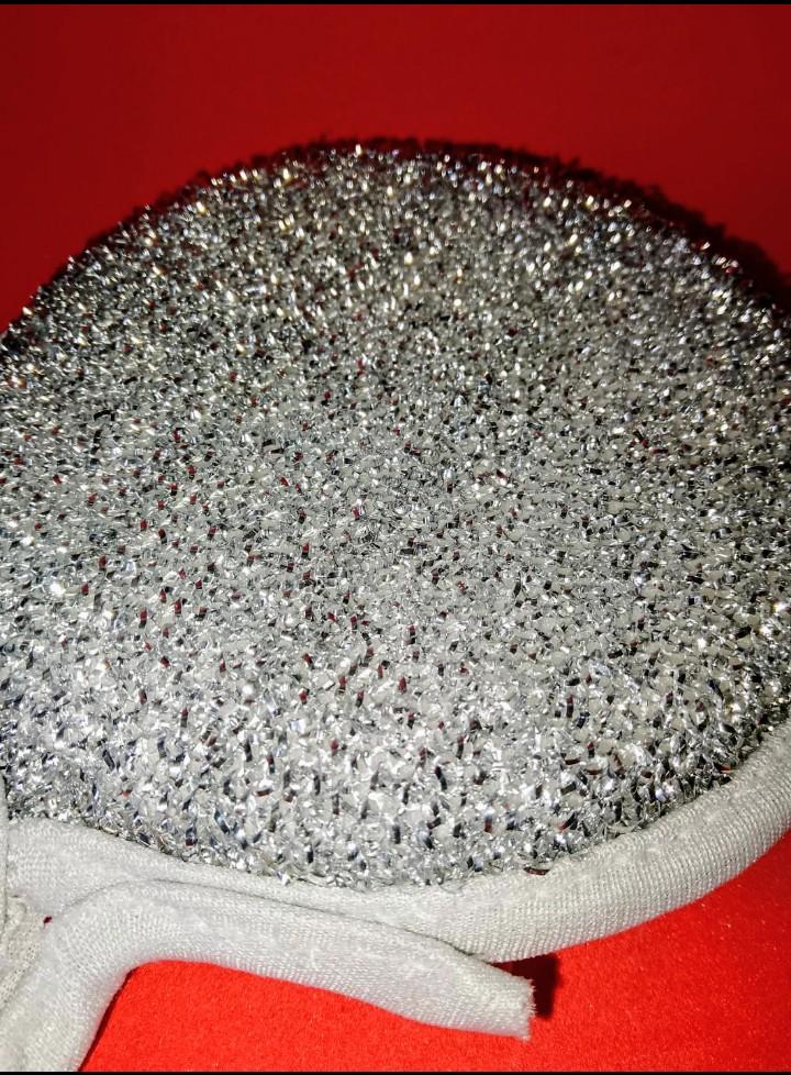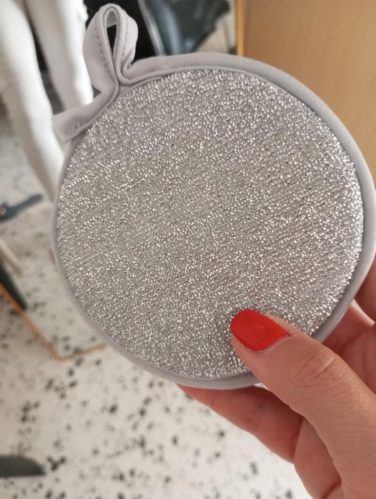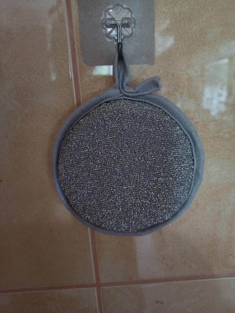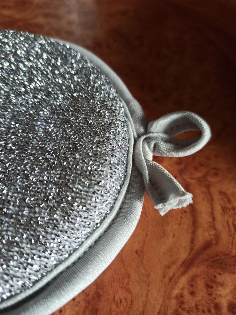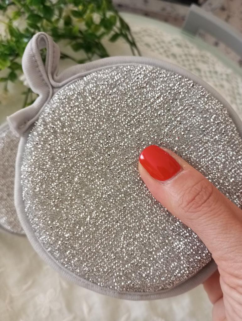 Double-sided metal dishwashing sponge You can use this sponge to wash dishes, gas stoves, clean pots, pans, etc.. When you apply detergent to the sponge, it foams up nicely.. The sponge is made qualitatively: the edges of the sponge are trimmed with braid, so it will not unravel. Also for convenient storage there is a loop by which it can be hung.. The sponge does its job perfectly. There are 3 pieces in the set Satisfied with the order. And I recommend it to you 👍