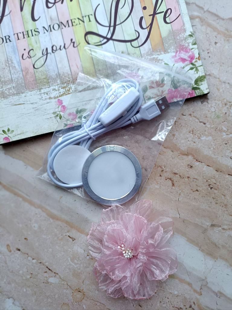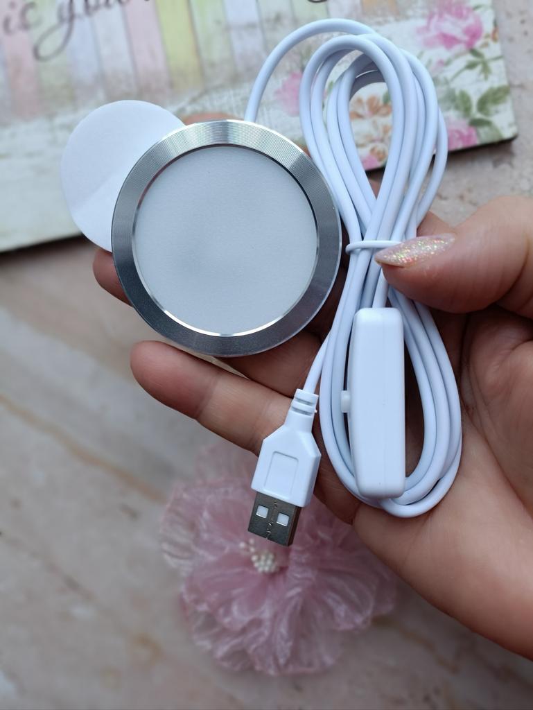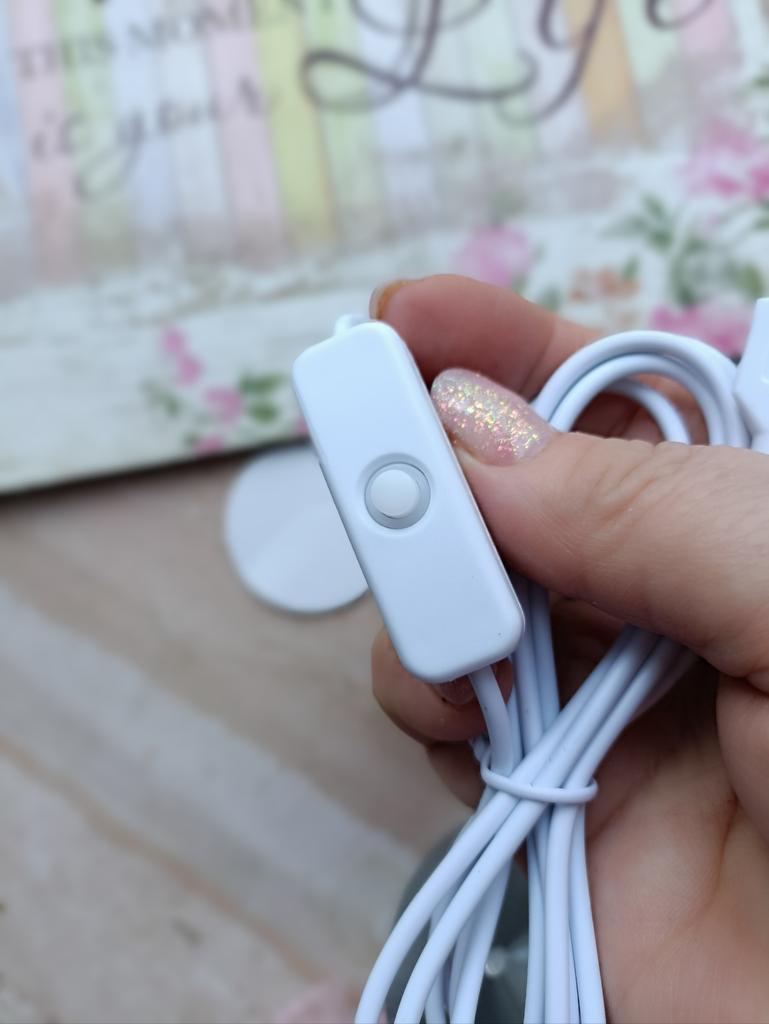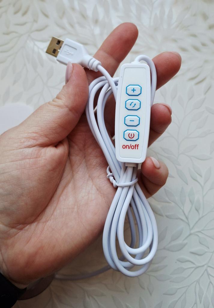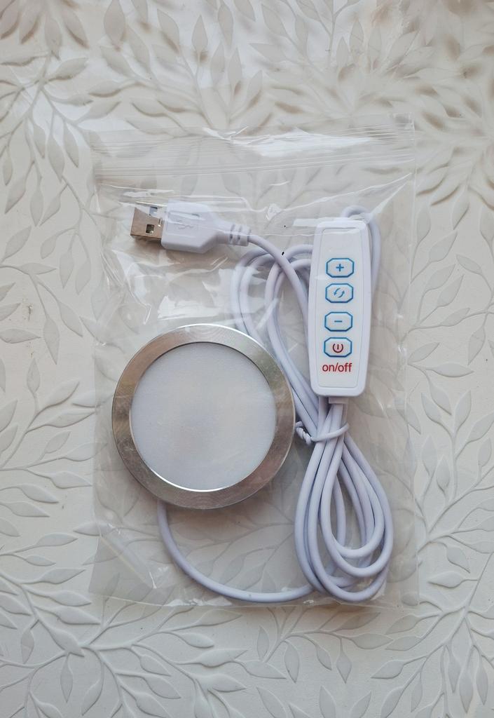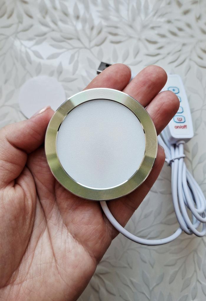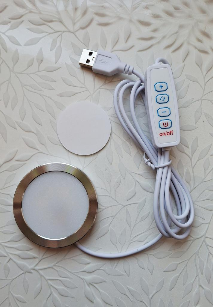 LED USB light Has 3 lighting modes Brightness control buttons. Powered by USB The quality is excellent Double-sided tape for mounting on a vertical surface is included. I recommend 🤗
