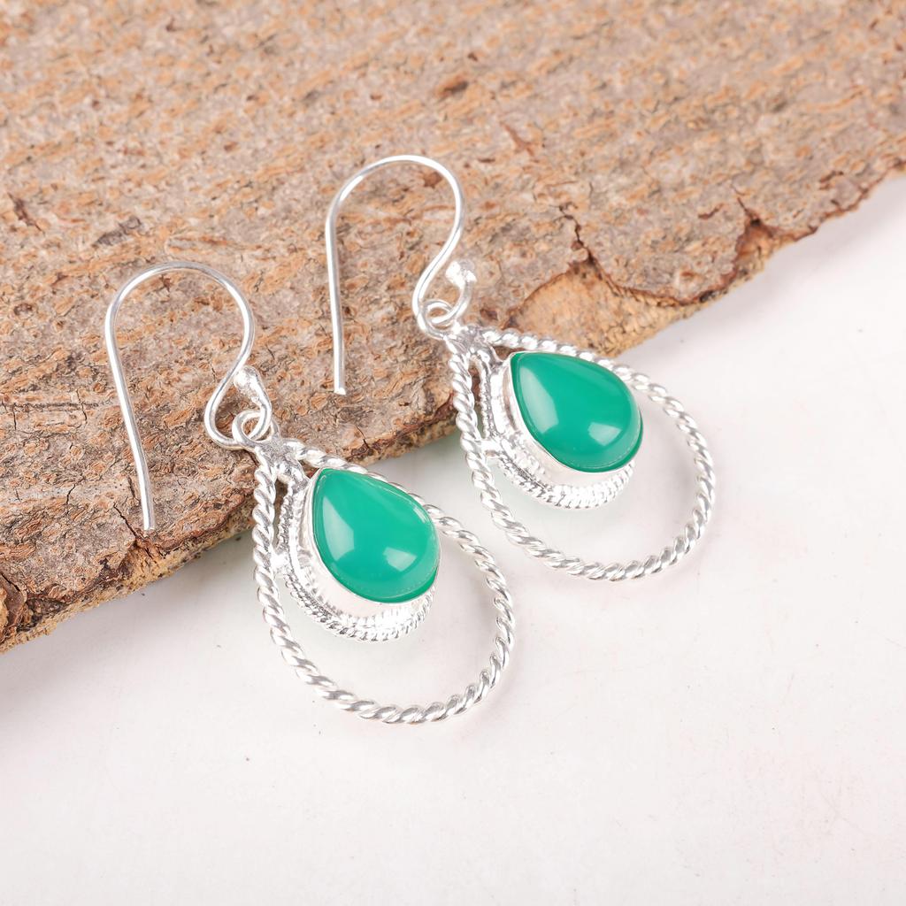 Dazzling Green Onyx Cab Gemstone Jewelry, 925 Solid Sterling Silver Earrings, Handmade Intuition Earrings, For Wedding Gift
