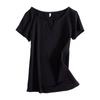 This stylish women's T-shirt, crafted from premium combed cotton, features a modern Korean slim fit design. Its solid color pattern and short sleeve length make it perfect for a fashionable, everyday look. The T-shirt is designed with a flattering V-neckline, adding a touch of elegance to your casual wardrobe. Ideal for pairing with your favorite jeans or skirts, this versatile piece offers comfort and style for any occasion.