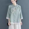 Experience a blend of tradition and comfort with this exquisite women's top, ideal for summer 2024. Crafted from a rich blend of cotton and linen, it promises breathability and softness throughout the day. The top showcases detailed embroidery adding a touch of ethnic elegance that stands out effortlessly. Designed with a stand collar, it elevates the style while the loose fit ensures comfort. Featuring three-quarter sleeves, this garment is perfect for adding a stylish flair to your casual wardrobe. The solid color pattern provides versatility, making it a must-have for any fashion-forward wardrobe.