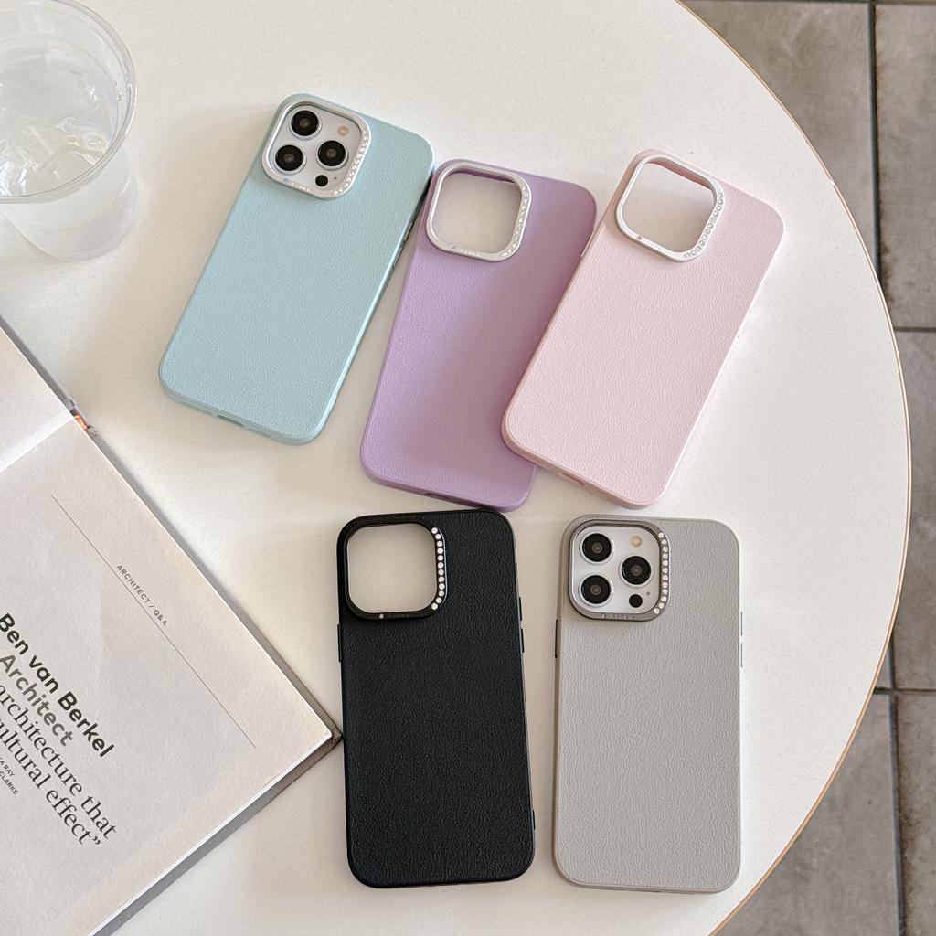 Suitable for IPhone16promax, Plain Leather Phone Case, Apple 15, Metal Diamond Lens Ring