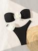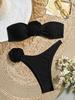 Three-Dimensional Floral Bikini Set: Bandeau Top & Triangle Bottoms
