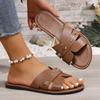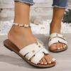 Unique Women's Flat Slippers - Casual Open Toe, Artificial Cover, Gold Buckle Strap, Comfortable Rubber Sole - Multifunctional All Season Shoes