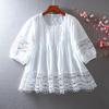 Chic Foreign Style OL Hollow Lace Ruffle Slimming A-line Shirt Top