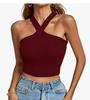 2024 Spring/Summer Women's Knitted Backless Cross Halter Strap Bralette Sweater Tank Top