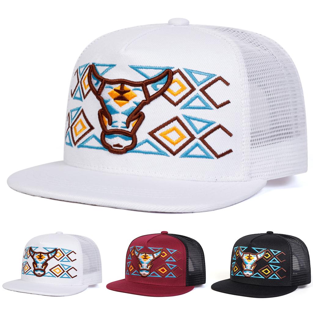 Unisex Ox Head Embroidery Hip-hop Net Hats Spring Summer Adjustable Casual Baseball Caps Trucker Caps Sunscreen Hat