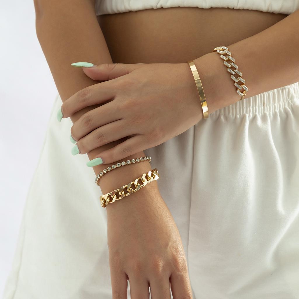 Accessories, Exaggerated Thick Chain Glossy Bracelet Bracelet, Personalized Full Diamond Cuban Buckle Adjustment Bracelet Set