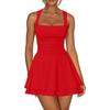 Fashion Sexy Square Collar Slim Waist Sleeveless Short Dress Women Elegant Solid Color Pleated A-line Party Mini Short Dress Casual Simple Clothing