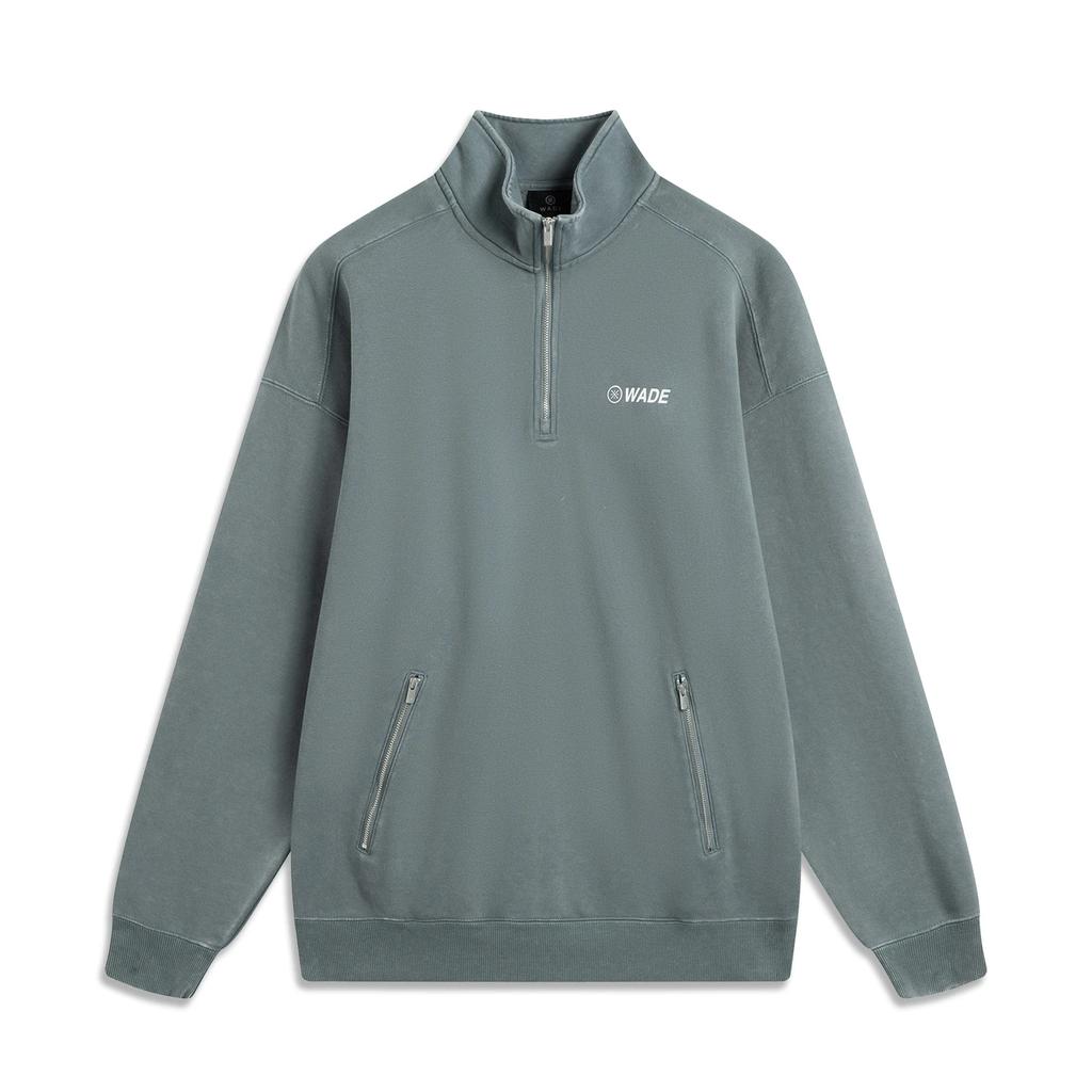 Li-Ning Wade Series Letter Stand Collar Comfortable Breathable Versatile Fleece Warm Sweatshirt Men Sweatshirt Storm-Gray Washed AWDV041-7