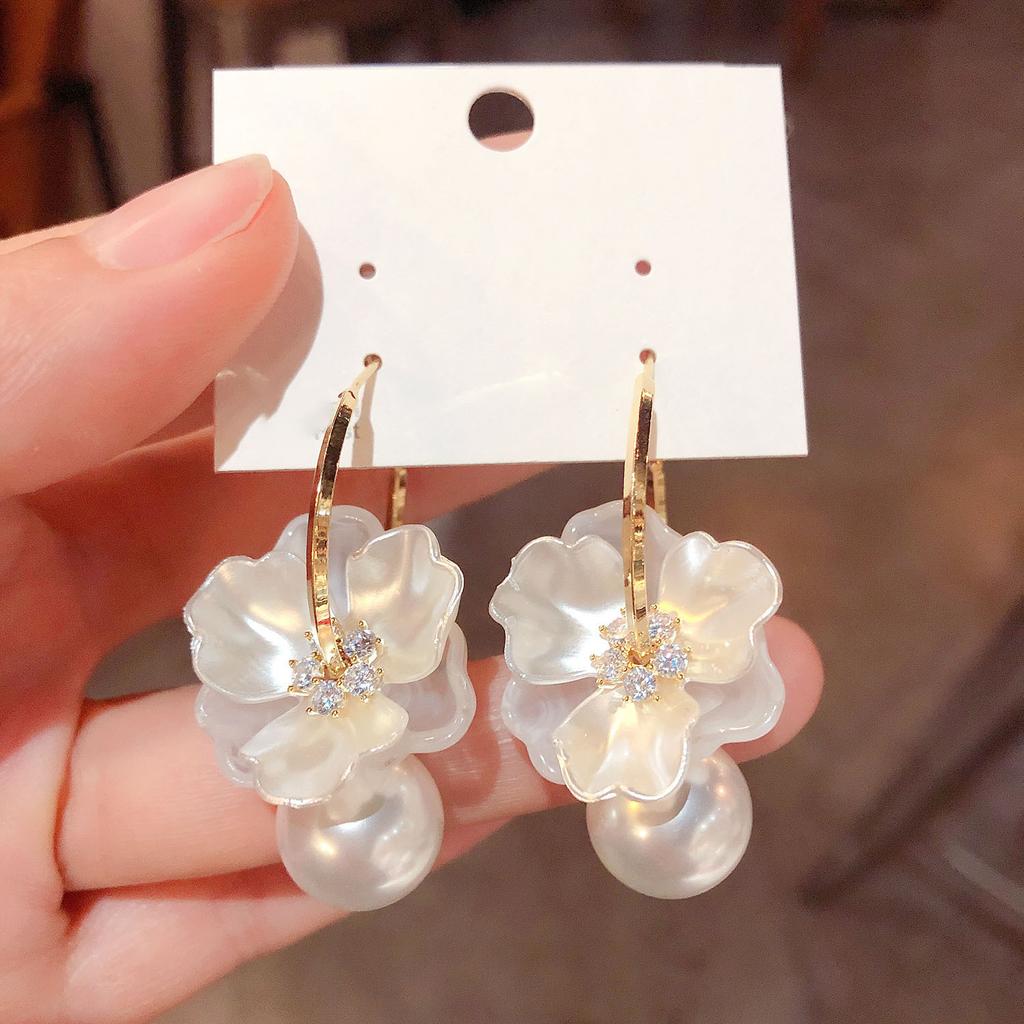 Zircon Flower Pearl Earrings Light Luxury Temperament Earrings Versatile Premium Earrings Women