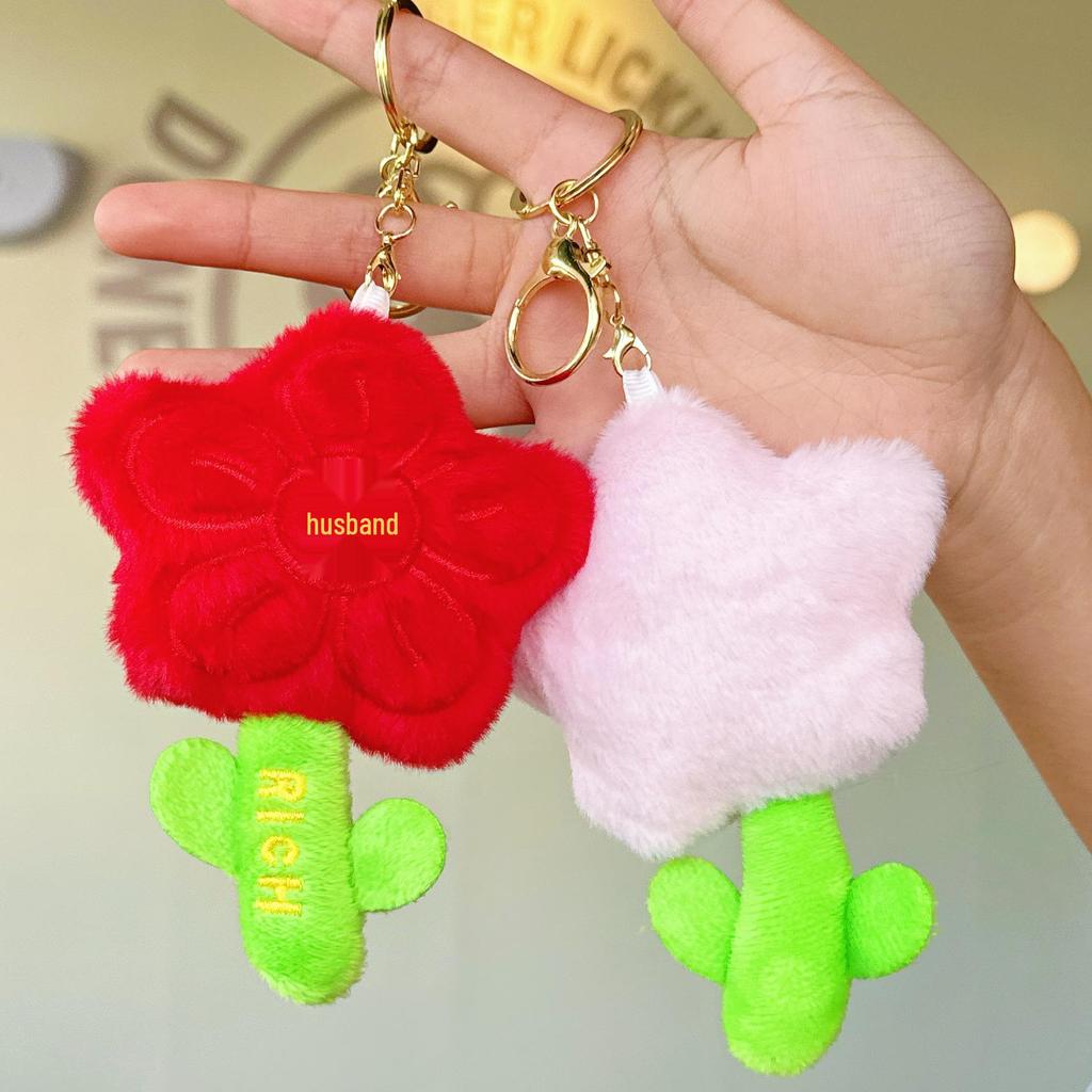 Cute Internet Celebrity Red Flower Plush Toy with Money Flower Pendant Keychain Bag Charm