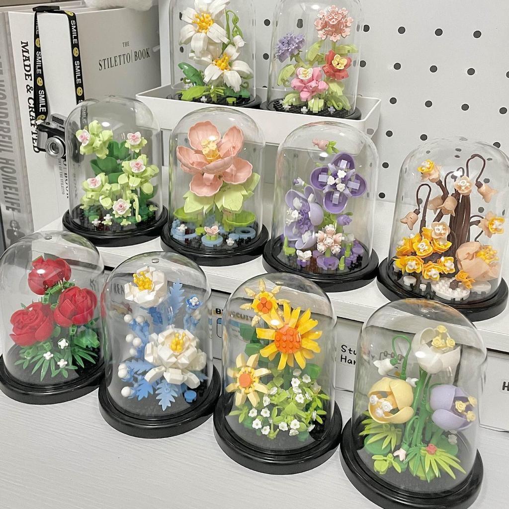 Sunflower & Rose Flower Building Blocks Toy Set for Kids - Assembled & Qixi Gift, Lego Compatible