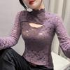 This elegant and modern shirt is designed for the stylish woman who appreciates both comfort and sophistication. Made from high-quality lyocell, the shirt offers a slimming fit and features a semi-high neck with delicate lace cutouts, adding a touch of femininity. The long sleeves are crafted from tencel, ensuring a soft, breathable feel ideal for the transitional seasons. Perfect for both casual and formal occasions, this versatile piece effortlessly enhances any wardrobe.