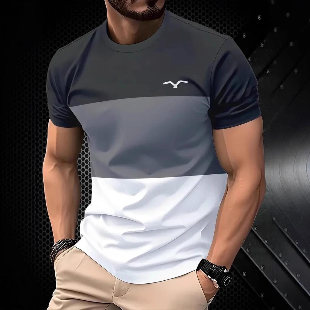 Summer Men's Casual Sports T-shirt 3D Printed Gradient Short Sleeved Round Neck T-shirt