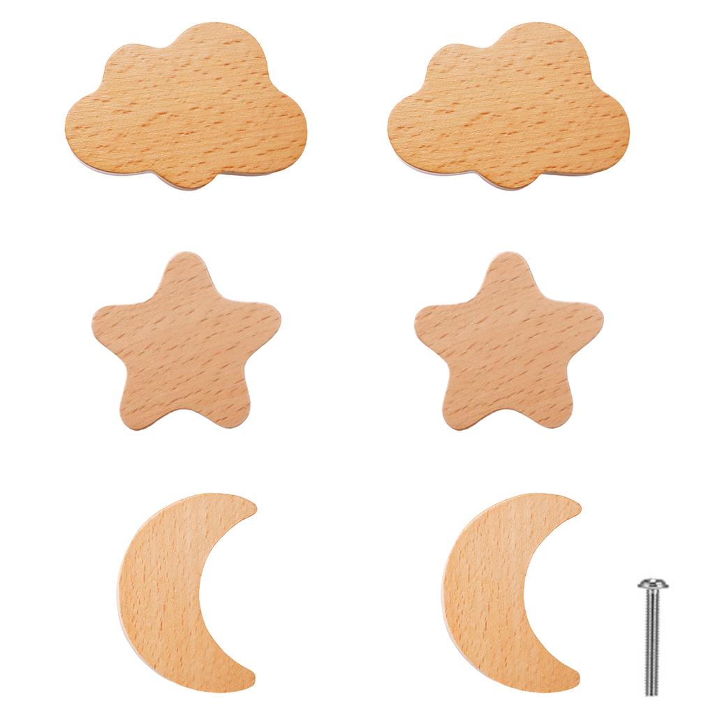 6pack/lot Moon Drawer Knobs Wooden Handles For Children S Room Decor Wooden Animal Cabinet Knobs