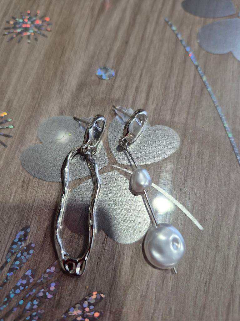 Asymmetric Earring Freshwater Pearl Metallic Exaggerated Long Stud Earring Ladies and Girls Party Jewelry Gifts