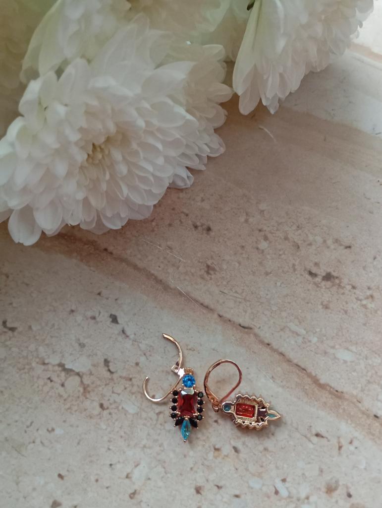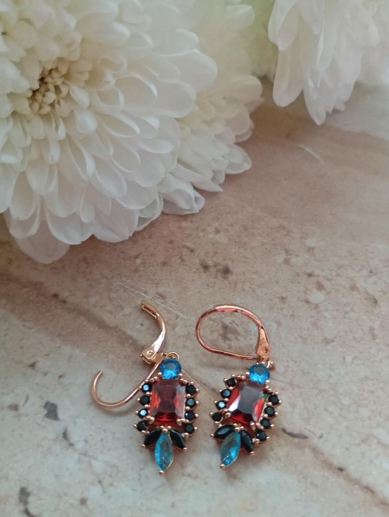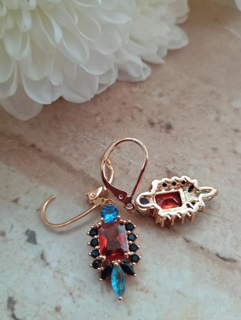 Vintage Red Black Zircon Drop Dangle Earrings for Women Luxury Gold Color Wedding Earrings Party Jewelry Gifts
