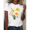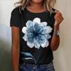 Womens' Retro 3D Floral Print Blue and White Watercolor Flower Short Sleeved Summer T-shirt