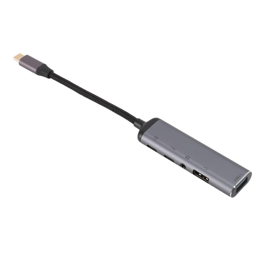 1. 5 IN 1 HUB: The 5 in 1 USB C hub has a 3.5mm headphone jack, USB3.1 Type A, USB2.0 Type A, USB C, PD charging port, which perfectly solve the problem that the device has no interface or too little interface