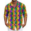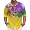 Men's Summer New Loose Print Long Sleeve Shirt Cardigan Beach Shirt