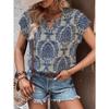 Women's Fashion Casual Summer Spring Flower Pattern Print Short Sleeve V-Neck Blouses & Shirts