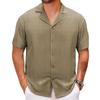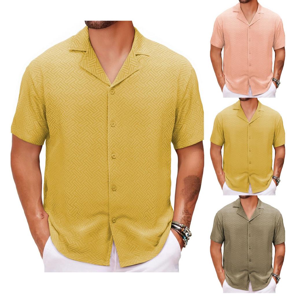 Men's Summer Casual Flower Shirt Fabric Cuban Collar Short Sleeve Shirt