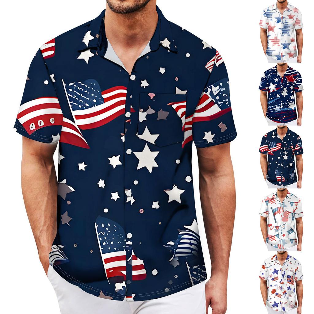 Men's Vintage Button Down Bowling Shirts Short Sleeve Summer Beach Shirt