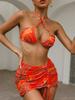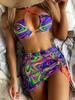 Womens Sexy Print Bandage Swimsuit 3 Piece Bathing Suit Retro Hawaii Print Bikini Set